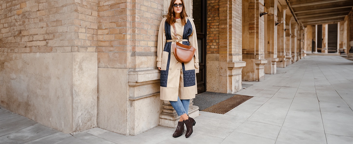 Everyone loves denim, but styling with ankle boots is not that simple. You can try pairing them with a white sweater and layer up with a tan coat. Complete the style with leather ankle boots.