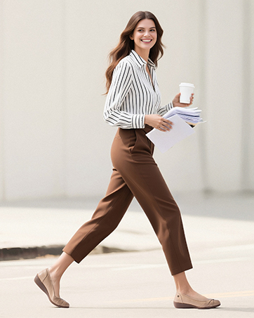 Level up your everyday style with these women’s fashion flats. The crisscross design on the smooth vegan leather upper gives added texture and style. The textile-covered foam lining reduces friction for enhanced comfort while the high-density memory foam insole provides enough arch support. These casual flats for women ensure you stand and walk with comfort even when you have to be on your feet all day. Supportive and comfortable, these women’s wedge flats are suitable for office and casual wear.
