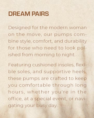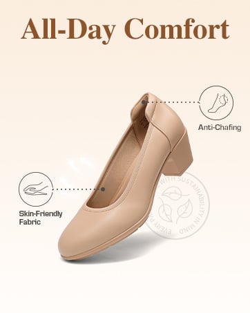 These low-heeled pumps are crafted for those long days on your feet, offering seamless support and comfort from morning to night. Designed to cradle your feet with a cloud-like sensation in every step, makes standing and walking feel effortless. These pumps combine graceful elegance with superior comfort, letting you move through the day looking chic while keeping your feet relaxed and fully supported.