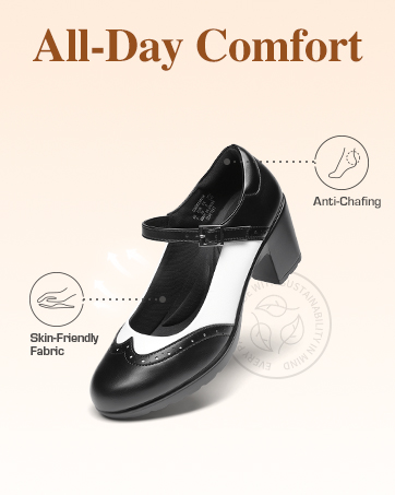 - Stable Footing: The 2.8-inch low block heel gives a comfortable boost of height. The TPR outsole provides greater traction & is wear resistant.