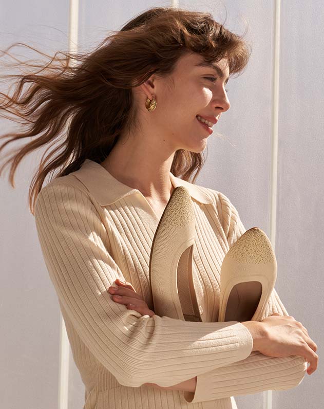 - Knitted Upper: The breathable knitted fabric is sustainable and is made from recycled bottles, ensuring a snug fit and breezy comfort. Additionally, these flats are machine washable for a fresh new look every time.